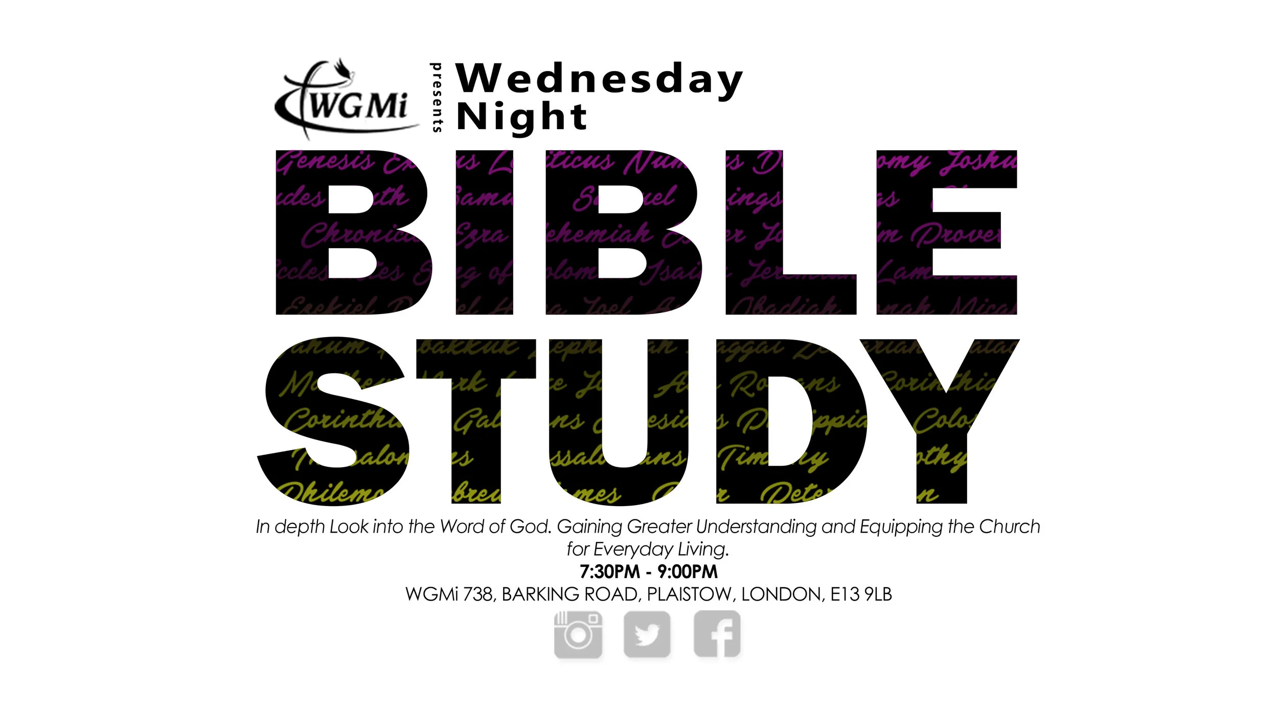 Bible Study: 7:30pm-9:00pm EventsWGMI OnlineOctober 17, 2018Word of God Ministry International Facebook0 Twitter Pinterest0 0 Likes